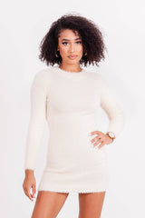 Sixth June long sleeves for women. Warm and cosy fluffy fabric. Slim cut, mini length. Beige design.