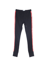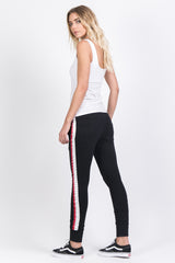 Sixth June women joggers with a slightly high-waisted cut and satiny stripes on the sides. Fitted cut and drawstrings on the waist. Black model with white and red stripes.