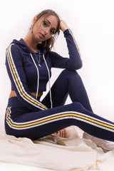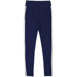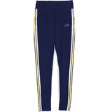 Sixth June leggings for women with a three-coloured taping down the sides. Skinny cut (cut closely to the body, high waist and Sixth June logo printed. Navy blue with black, white and yellow stripes.