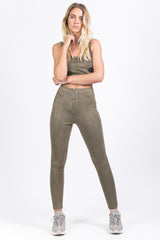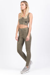 Sixth June women legging in a soft suedette fabric, with a front zip. Skinny cut very close-fitting, and high-waisted. Khaki model.