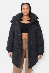 Sixth June long puffer for women. Padded and quilted effect, side pockets with zipped fastening, central zipped and buttoned fastening. Removable hood with scratch and drawstrings, tightened tabs on the cuffs, interior drawstring on the waist, logo on a rubber patch on the front.