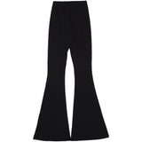 Sixth June flare trousers for women made of a ribbed fabric, with Sixth June signature logo embroidered to front. Skinny cut, wide-cut leg and high-rise elasticated waist. Black design.