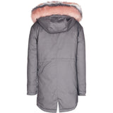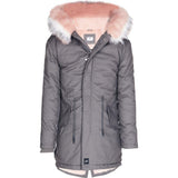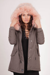 Sixth June parka for women with an oversize (removable) faux-fur trim on the hood, and a soft and warm lining. Regular cut with a drawstring waist, a double fastening (zip and buttons) and raglan sleeves. Two side pockets and inside pocket with a warm lining.Thick twill fabric and water repellent. Grey with pink inner coat and two-coloured (pink, grey) faux-fur.