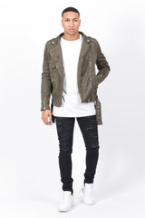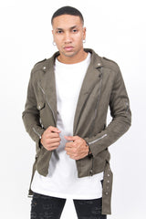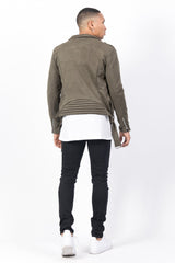 Sixth June jacket for men made of suedette. Regular cut, silver zips to the sleeves and front, striped yokes on the back, zip fastening and belt detail. Khaki design.
