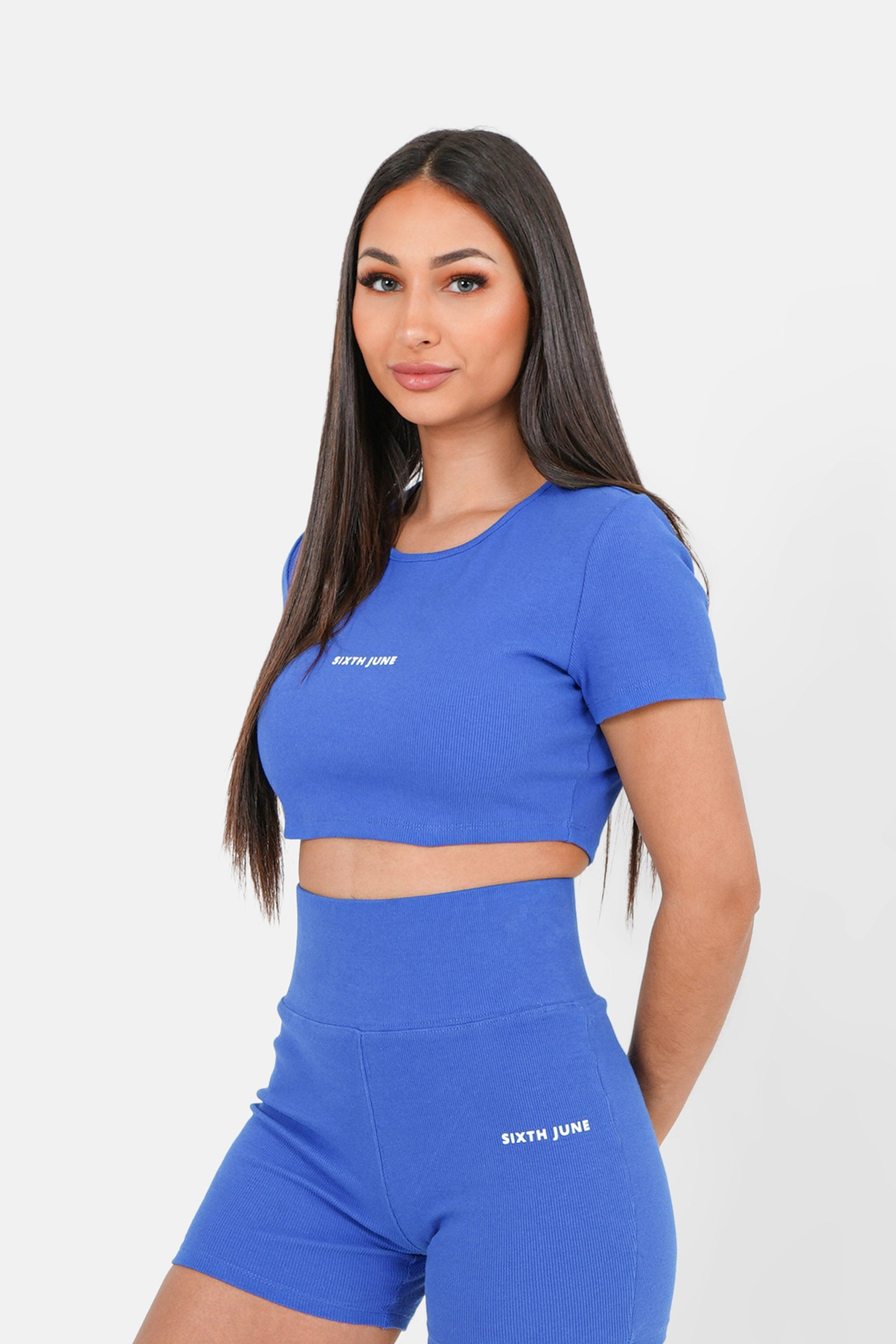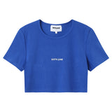 Sixth June top short sleeves for women. Logo printed on chest. Ribbed fabric. Slim and cropped cut.