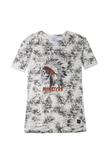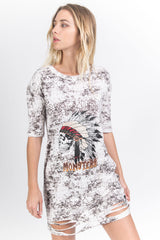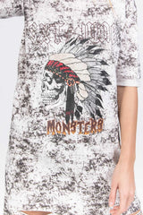 Dress white Sixth June Women. Indian skull at the front. Inscriptions Monsters and Sixth June. Destroyed effect.