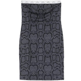 Sixth June dress with bandeau design and snake prints. Bodycon fit, branded band and midi length. Grey design.