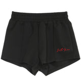 Sixth June shorts for women with Sixth June signature logo embroidered to front. Short and regular cut, pintuck details to front and elastic waistband. Black design.