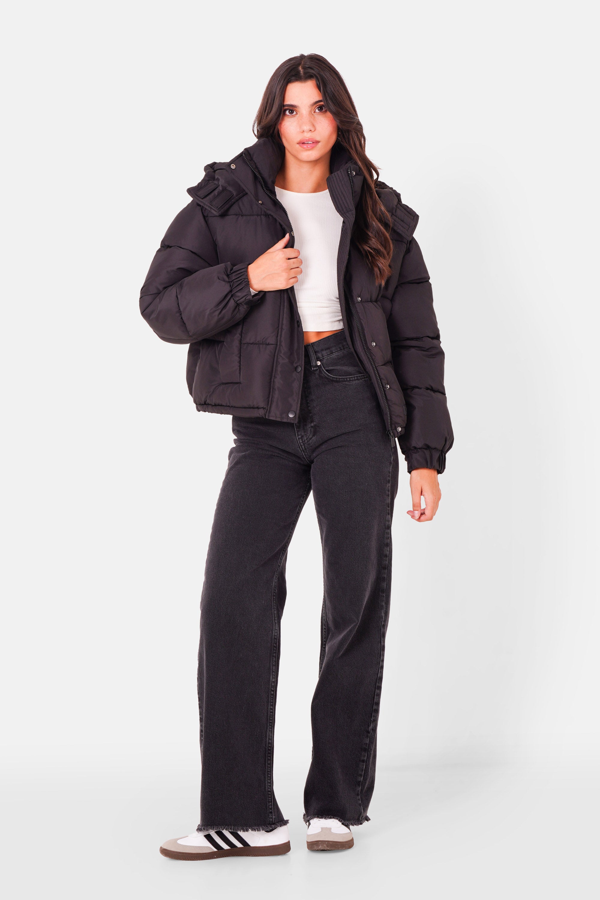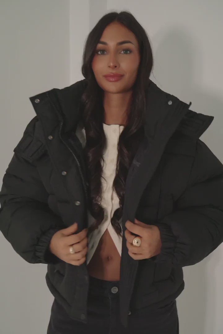 Padded cropped down jacket black