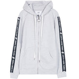 Sixth June hoodie for men with branded tapes along the sleeves. Fitted cut, zip fastening, drawstring hood and side pockets. Light grey with black stripes.