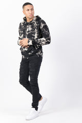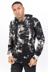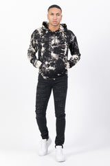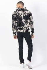Sixth June men hoodie with an all over paint washed effect (acid washed). Regular cut with dropped shoulders and kangaroo pocket. Black and white model.