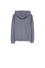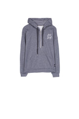 Sixth June women hoodie with a gothic SJ logo embroidered on the chest, and a zip until the middle. Regular cut with dropped shoulders, kangaroo pocket and strings. Dark grey model.