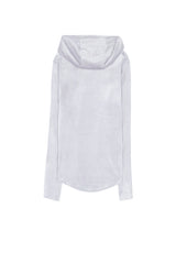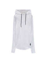 Sixth June men hoodie in a velvet fabric, with a hood and satiny stripes along the sleeves. Fitted cut and rounded bottom. Light grey model.