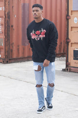 SIxth June sweatshirt for men with roses and Sixth June Paris embroidered at the front. Bigger cut than a regular sweatshirt with dropped shoulders. Black model with red and green embroideries.