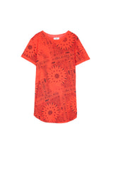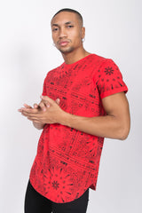 Sixth June men t-shirt with a bandana print on the whole clothing. Regular cut, slightly long with a rounded bottom and a small hem on the sleeves. Red model with black print.