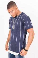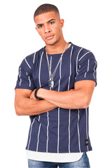 Sixth June T-shirt for men baseball inspired with vertical lines. Regular cut and sleeve hems. Navy blue design.