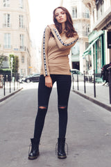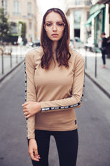 Sixth June t-shirt for women with a hood and long sleeves. Slimfit, elastic material and SIxth June writings along the arms. Plain sand beige model.