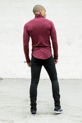 Sixth June men roll-neck t-shirt with a skin-tight cut. Little chest logo, long sleeves and rounded form at the bottom. Burgundy model.