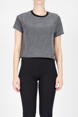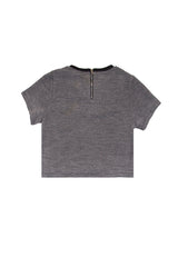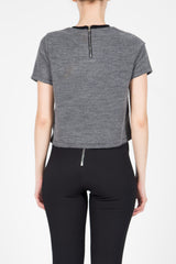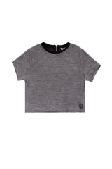 Short black and grey Sixth June parisiennes t-shirt with short sleeves. Black round collar, with a zip in the back.