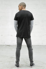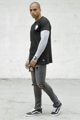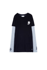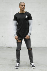 Sixth June men t-shirt with double sleeves. Regular cut and SJ gothic logo on the sleeves and the chest. Black model.