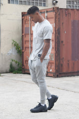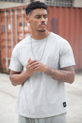Sixth June t-shirt for men with dropped shoulders. Bigger cut than a regular t-shirt, and round neck. Plain light grey model.