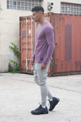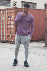 Sixth June t-shirt for men with long sleeves and dropped shoulders. Slighlty longer cut than a regular t-shirt and round neck. Plain purple model.
