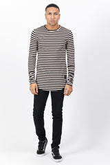 Long Sleeved Striped Sailor T-Shirt Beige Black