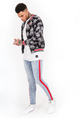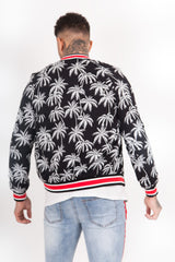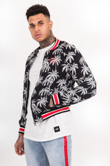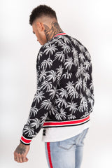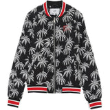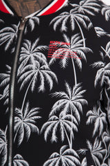Palm Trees Thick Teddy Bomber Jacket Black White