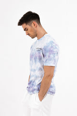 Sixth June t-shirt short sleeves for men. Tie and dye design, color gradation all over the fabric. Limited Edition printed on the front with texts. Regular cut. Blue, green and purple design.