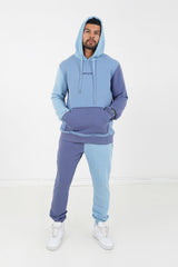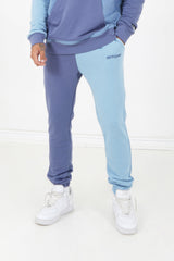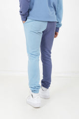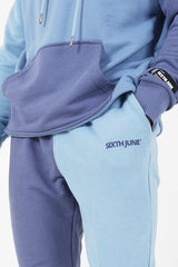 Sixth June joggers for men. Bicolored legs, mauve side and blue side. Logo printed on the left leg, elastic and drawstring waist, front and back pockets, elastic on ankles. Fitted cut. Mauve and blue design.