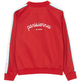 Sixth June jacket for women with satin bands down the arms. Short and regular cut, baseball collar, ribbed hem and sleeves, zip fastening, side pockets and Parisiennes de Paris printed on the back. Red and white design.
