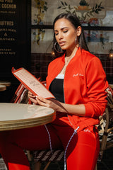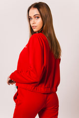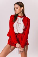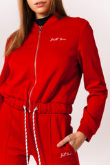 Sixth June jacket for women with Sixth June signature logo embroidered to front. Regular and short cut (cropped), zip fastening and elastic drawstring. Red design.