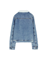 Sixth June denim jacket for women. Destroy effect on the front. Collar and interior in sheep lined. Buttoned fastening, front pockets. Regular cut. Blue model.
