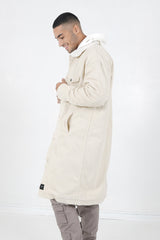 Sixth June long denim jacket for men. Faux-fur inner lining. Zip detail on the sleeves's extremities, 4 front pockets, buttoned fastening. Large cut. Beige design.