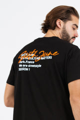T-shirt à manches courtes pour homme de marque Sixth June. Imprimé logo signature à l'arrière superposé sur des inscriptions: Youth Culture Matters, Season 1 et autres, petit logo signature imprimé sur la poitrine. Coupe classique. Modèle noir.