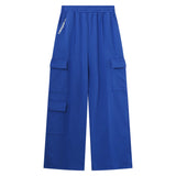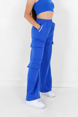 Coutures apparentes à l'avant, poches cargo sur les côtés, poches latérales, taille élastique avec cordons de serrage, logo printé sur la poche avant droite, inscription à l'arrière sur le haut de la jambe gauche.