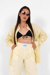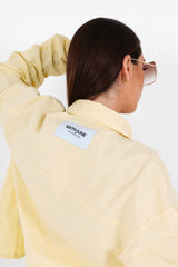 Logo sur patch tissé à l'arrière près de la nuque, fermeture à boutons aux poignets. Coupe oversize.