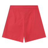 Poches latérales, plis à l'avant, mini fente de chaque côté, fermeture à zip et bouton.