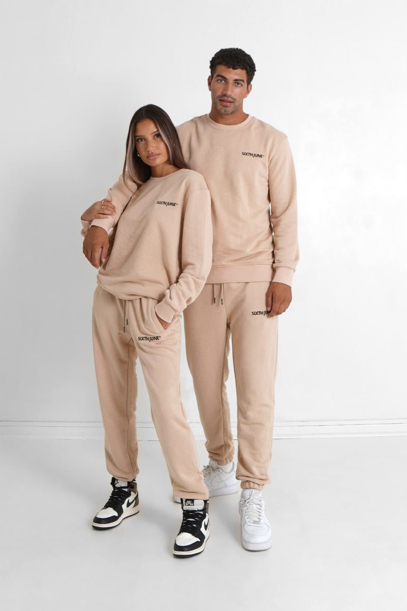 Sixth June - Sweatshirt soft logo brodé Beige clair
