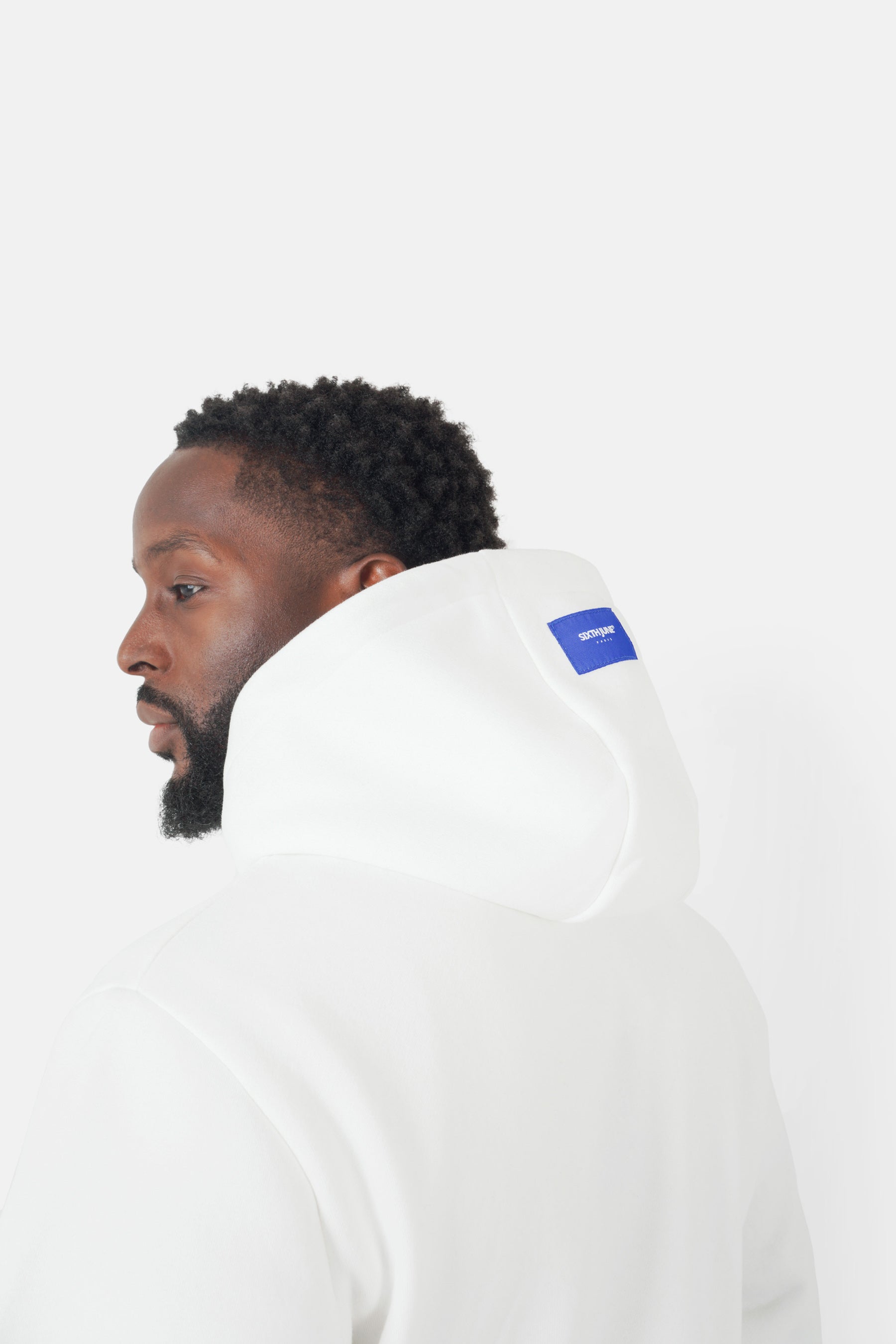 Matière épaisse, douce et chaude, poche kangourou, bords-côtes aux poignets et à la taille.