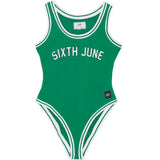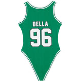Body Sixth June pour femme au couleur de l'équipe de basketball américaine: Boston Celtics. Coupe moulante, inscriptions "Bella 96" au dos et "Sixth June" à l'avant, col rond et fond avec boutons à pression. Modèle vert avec inscriptions blanches.