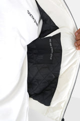 Fermeture zippée, élastiques à la taille et aux poignets avec.