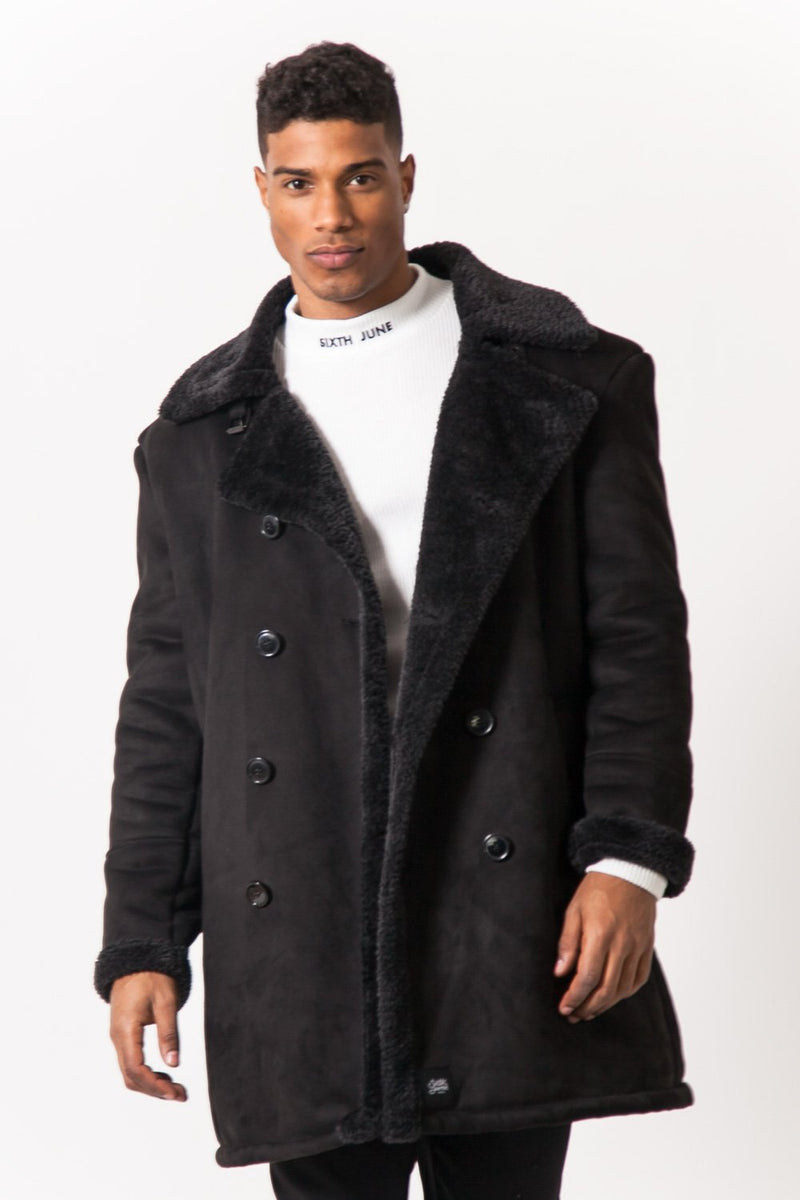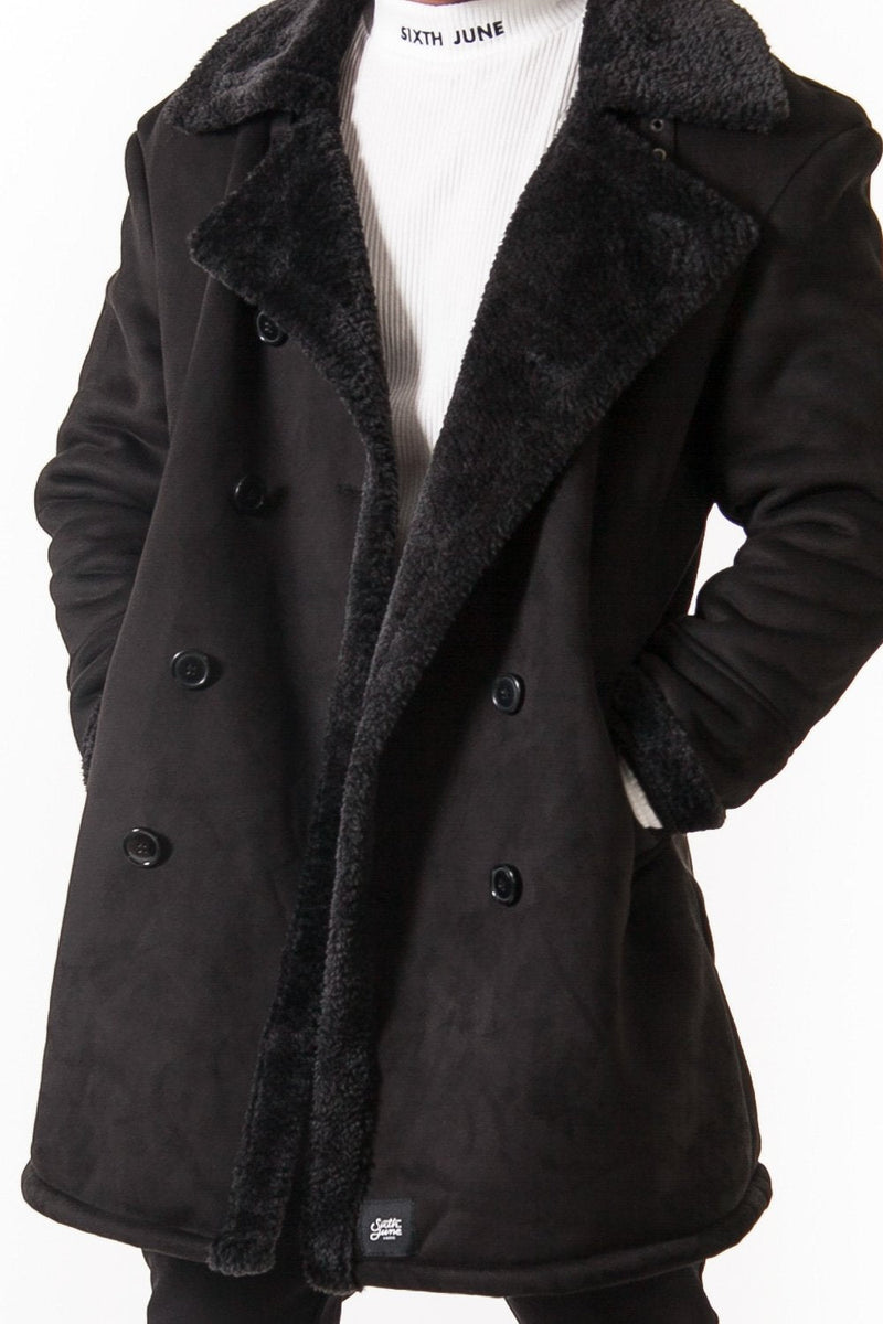 Caban pour homme de marque Sixth June. Matière en suédine, douche et chaude avec intérieur en fausse peau de mouton. Col à revers, double patte de boutonnage. Poches latérales et fonctionnelles. Coupe classique. Modèle noir, doublure (100% polyester).
