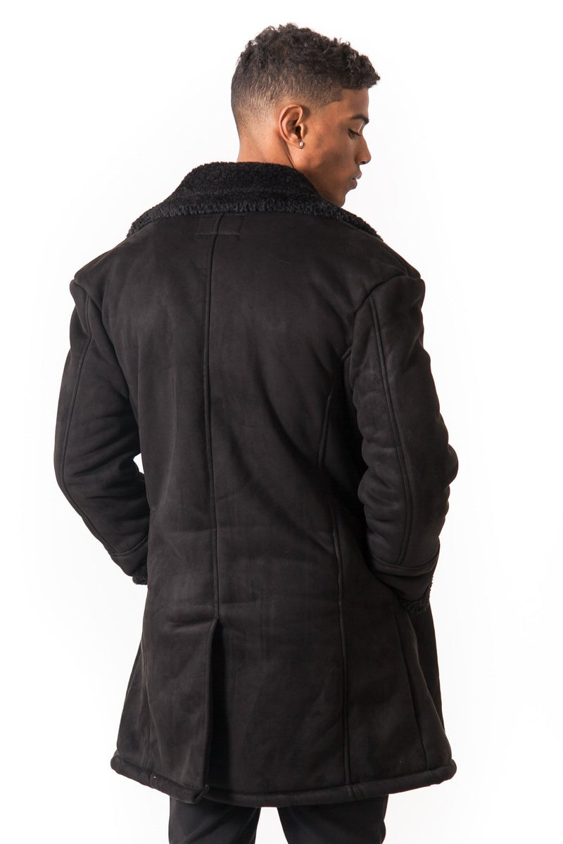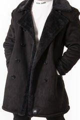 Caban croisé fourrure suede noir