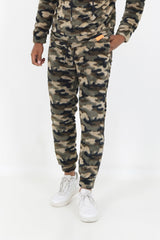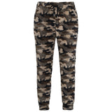 Imprimé camouflage dans une matière douce et chaude. Taille élastique avec cordon de serrage, Poches à l'avant, fausse poche à l'arrière.