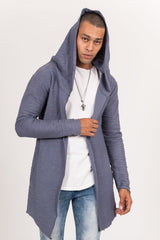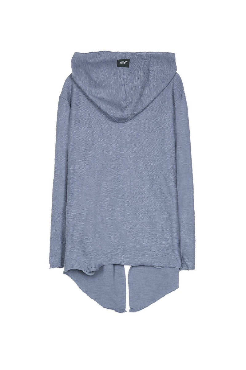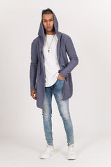 Cape Sixth June Homme, en coton flammé avec une capuche. Coupe classique, poches latérales et pas de fermeture. Modèle bleu gris.