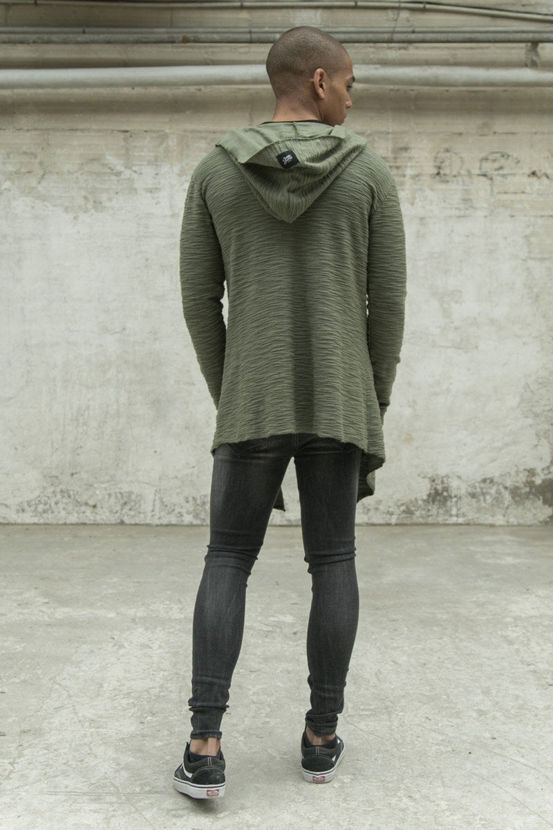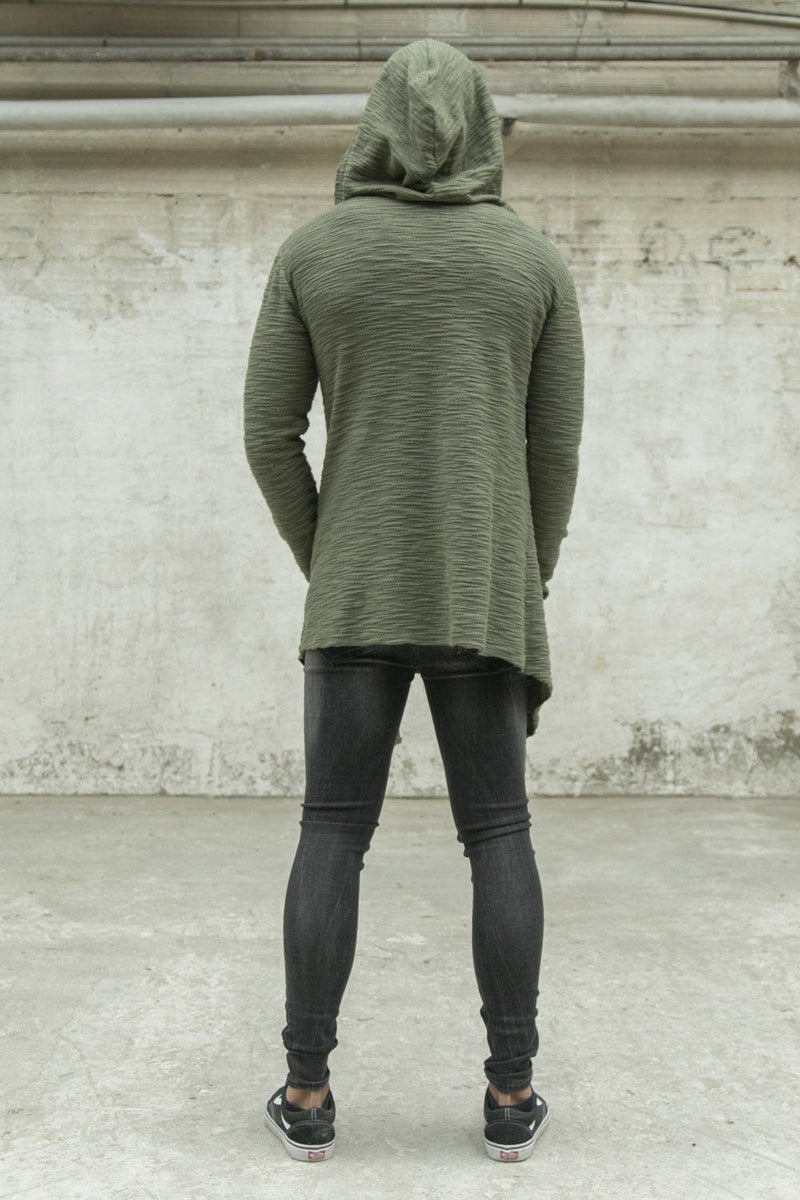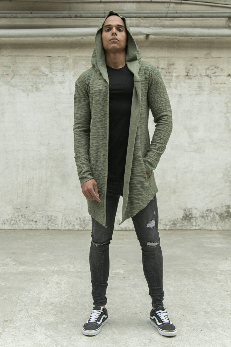 Cape Sixth June Homme, en coton flammé avec une capuche. Coupe classique, poches latérales et pas de fermeture. Modèle kaki.