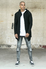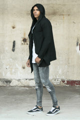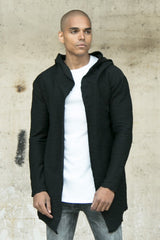 Cape Sixth June Homme, en coton flammé avec une capuche. Coupe classique, poches latérales et pas de fermeture. Modèle noir.