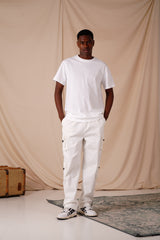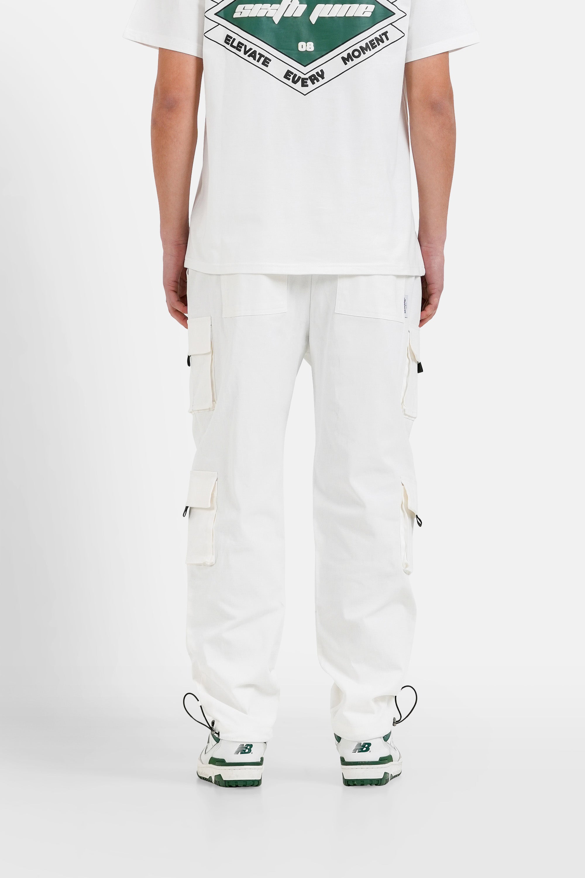 Poches latérales, poches à l'arrière, taille élastique avec cordon de serrage, cordon de serrage au niveau des chevilles.