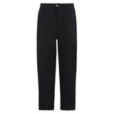 Poches latérales, poches plaquées à l'arrière, logo brodé sur la poche arrière droite, taille non élastique, boutonnée et zippée.